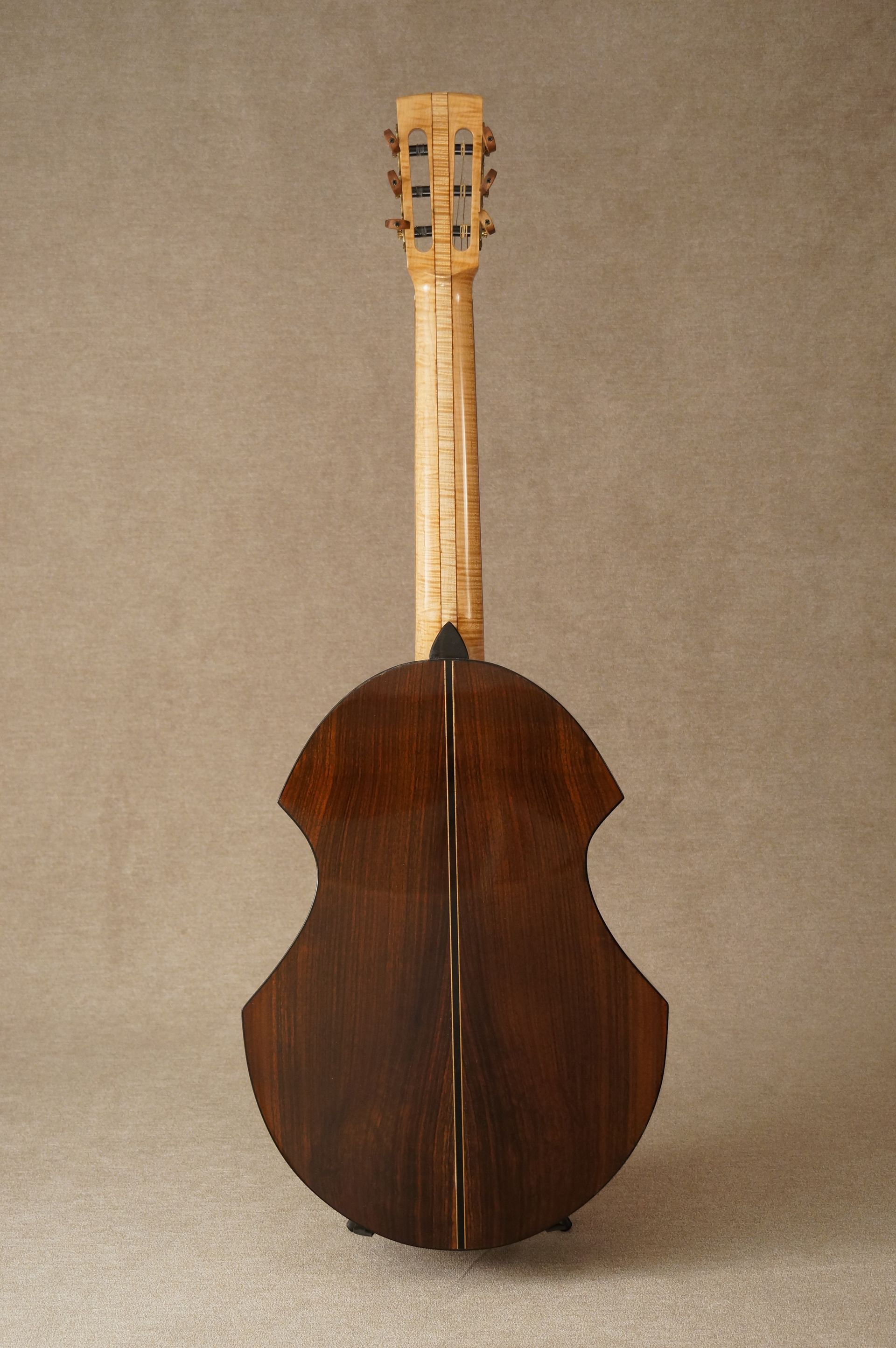 The first back on this guitar warped and detatched around 35 years ago. In 2020, I decided to restore it. So I cut the neck off, put together another set of rosewood and rebuilt it. This is the new embodiment of Genesi No. 1.