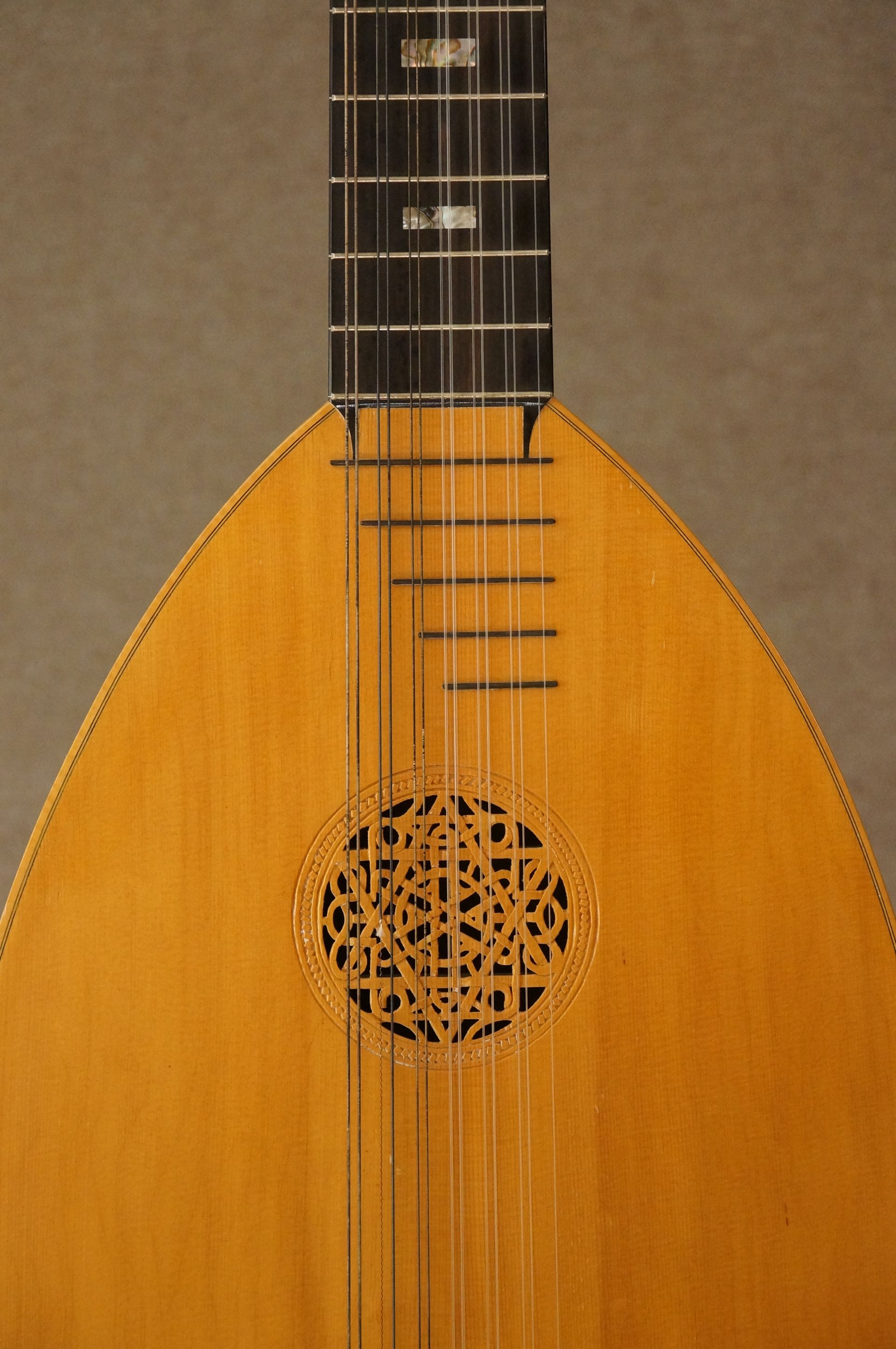 ButtonA lute is a particularly magestic instrument, and used to be the primary instrument for music students. I designed and built this one from scratch as my first project in RISD, as well as a system for further lute construction, when I wend there for graduate studies.