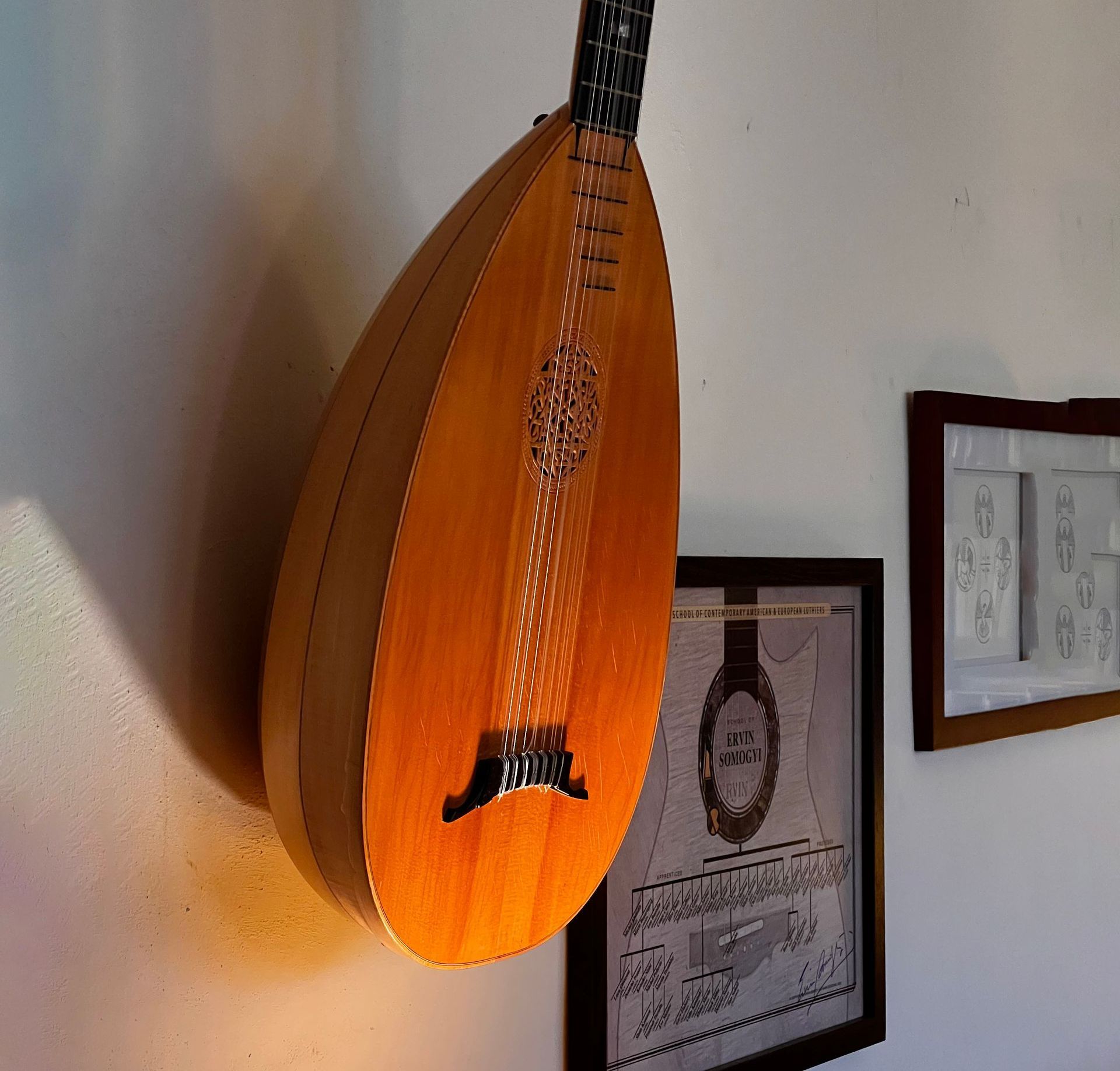 ButtonA lute is a particularly magestic instrument, and used to be the primary instrument for music students. I designed and built this one from scratch as my first project in RISD, as well as a system for further lute construction, when I wend there for graduate studies.